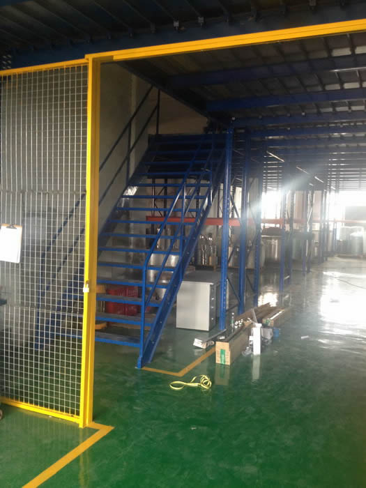 一樓可能通過堆高機作業,一般擺放可以上貨架的物品及(jí)存取頻率比較高(gāo)的(de)貨物,這樣在閣(gé)樓平台中,將主要作業集中在一樓,而二樓的貨(huò)物,可以通過我們設置的樓梯通過人工存取,當然,有時我們也會根據客戶要求,設計上(shàng)下貨口或升降平台存取。